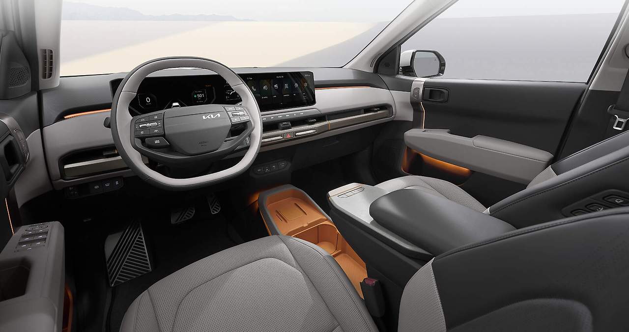 EV3는 기아의 디자인 철학인 '이유 있는 즐거운 경험(Joy for Reason)'을 기반으로 설계되었습니다. 전면부는 타이거 페이스와 스타맵 시그니처 라이팅을 적용하여 당당하고 강건한 이미지를 강조하였으며, 측면부는 역동적인 루프라인과 기하학적인 디자인 요소로 미래지향적인 스타일을 구현했습니다. 후면부는 전면과 조화를 이루는 스타맵 시그니처 라이팅과 볼륨감 있는 테일게이트로 와이드한 스탠스를 구현했습니다.